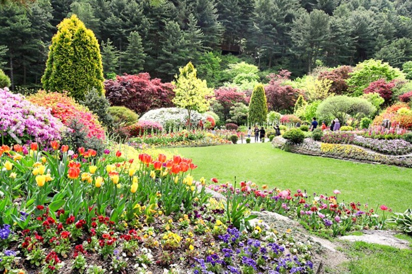 아침고요수목원에는 형형색색의 예쁜 꽃들이 봄나들이를 나온 손님들을 맞이하고 있습니다.